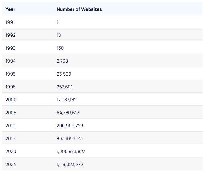 Tapi ternyata... data menunjukkan kenyataan yang berbeda. Secara internasional, pertumbuhan website justru terus bertumbuh dari waktu ke waktu. Bahkan di tahun 2024 saja jumlahnya sudah hampir mengalahkan tahun 2020 padahal baru 4 tahun. Di akhir 2025 nanti sudah pasti akan jauh melebihi itu.